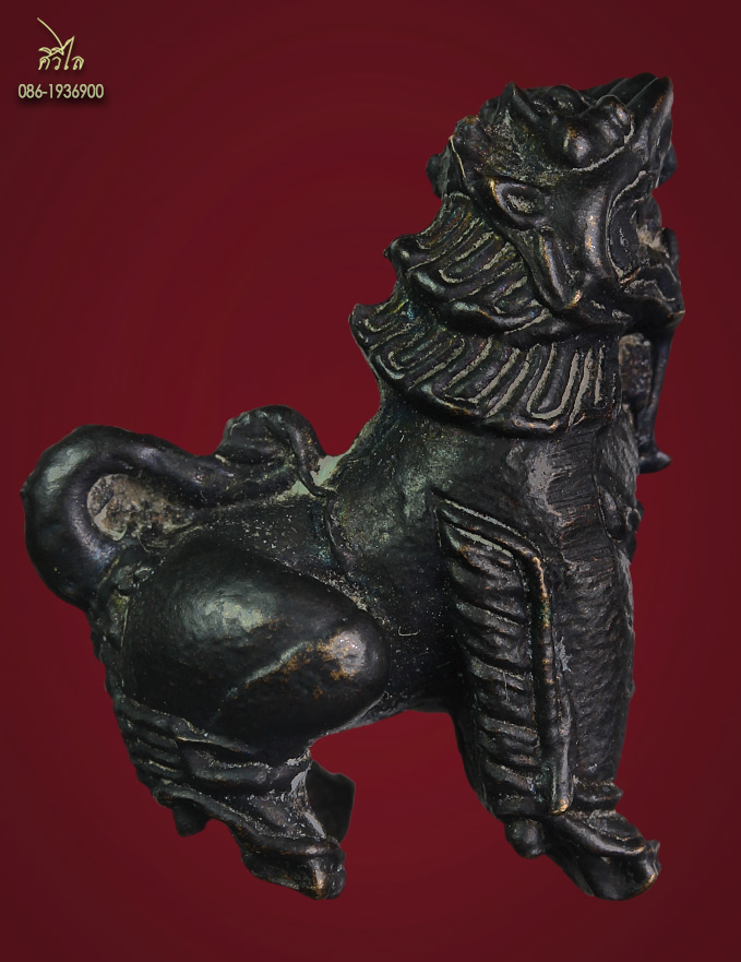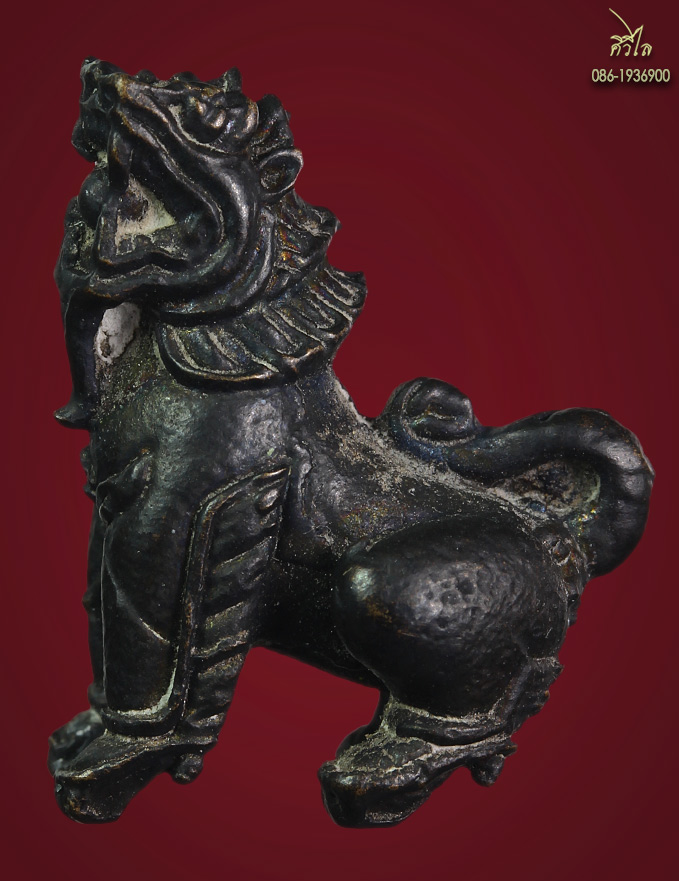 สิงห์เจ้าพ่อดำคาบแก้ว วัดบุพพาราม จังหวัดเชียงใหม่ ปีพ.ศ. 2519 เนื้อนวะโลหะ