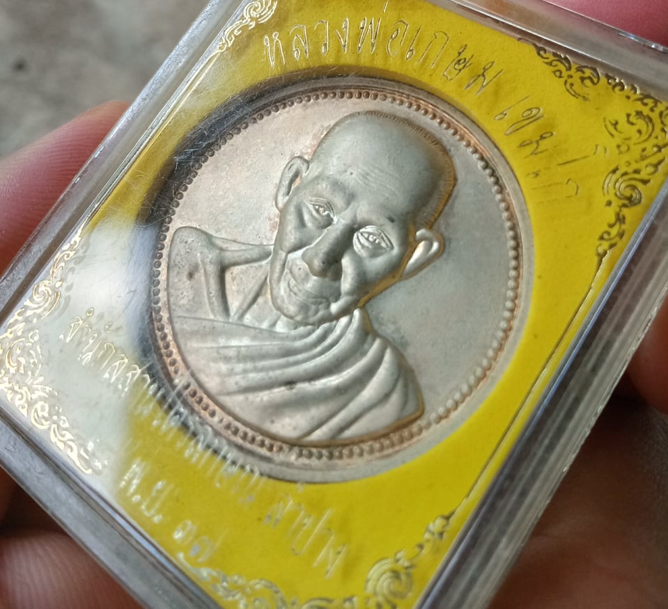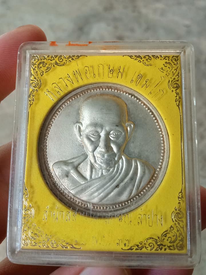 เหรียญจัมโบ้หลวงพ่อเกษม เขมโก ปี37 เนื้อกะไล่เงินเหรียญสวยผิวเดิมรุ้งๆพร้อมกล่องเดิม