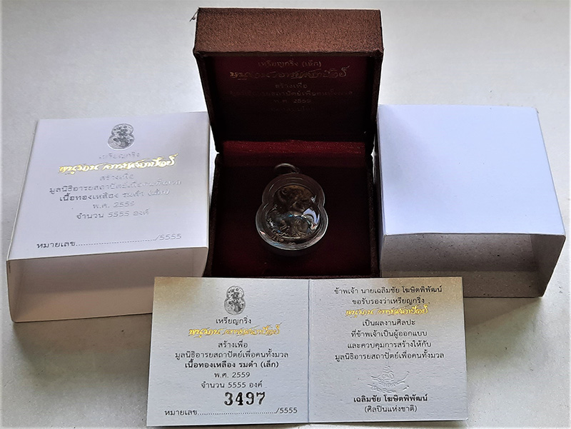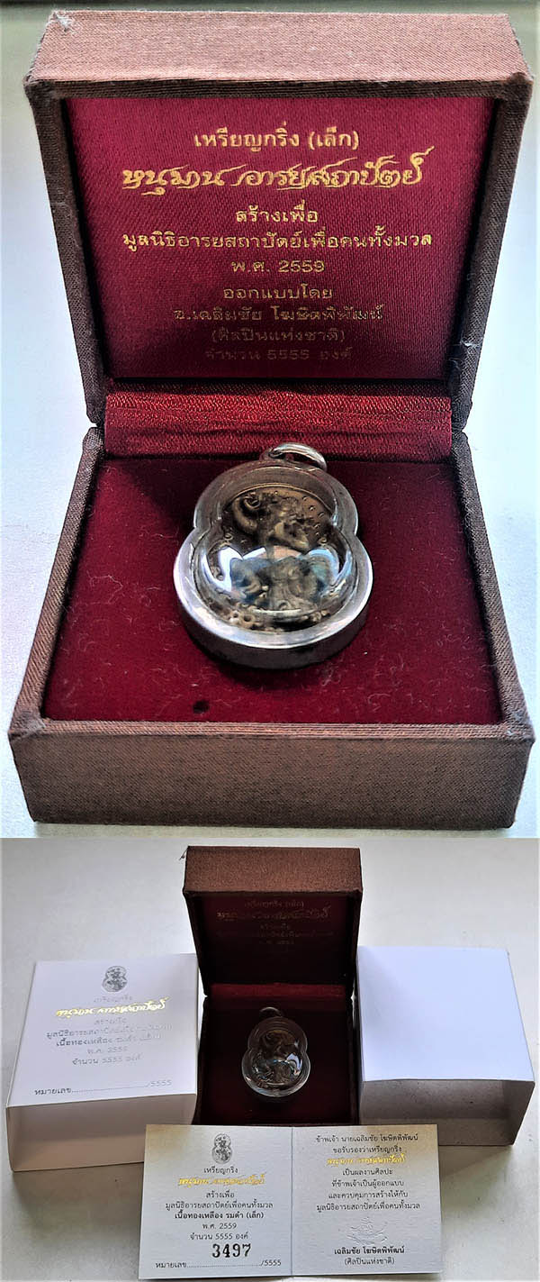 เหรียญกริ่งหนุมาน อารยสถาปัตย์ เนื้อทองเหลือรมดำ พิมพ์เล็ก หมายเลข 3497 รุ่นรวยแน่นอน สุดยอดพุทธศิลป์ ผลงานการออกแบบของ ท่านอาจารย์เฉลิมชัย โฆษิตพิพัฒน์ ศิลปินแห่งชาติ มาพร้อมเลี้ยมเงินงานมือเรียบสวยๆ มีอุปกรณ์ครบ กล่องเดิม ใบรับรองจากท่านอาจารย์เฉลิมชัย มีมาแบ่งปันกันเบาๆ เน้นไว ทัก โทร 0979204119 /ID line 0979204119