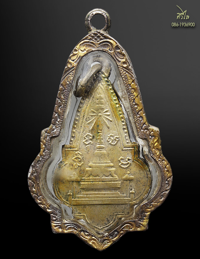 เหรียญรุ่นแรกพระบรมธาตุหริภูญไชย จ.ลำพูน ปี2460 เนื้อเงิน เลี่ยมเงินพร้อมใช้
