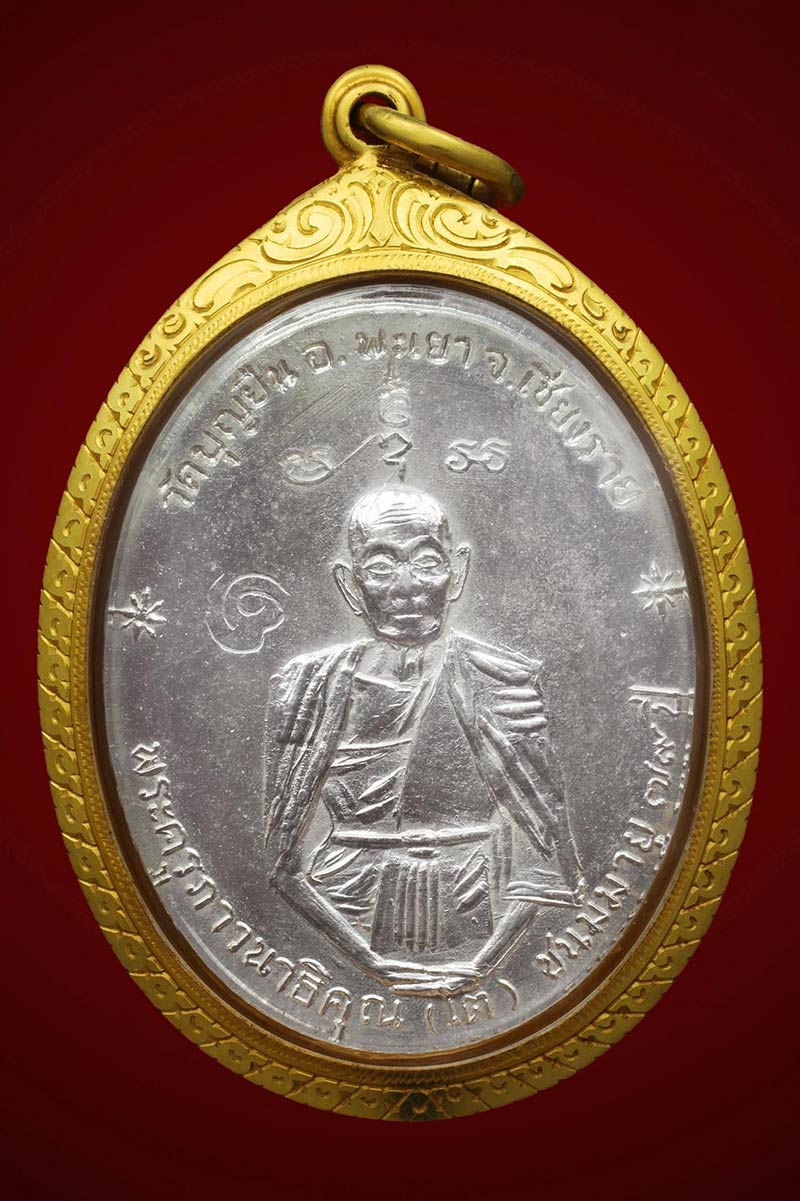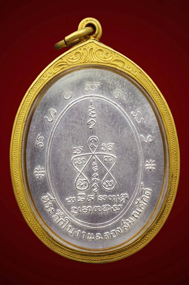 เหรียญ ฟ้าผ่า ครูบาอินโต วัดบุญยืน ปี 2517 เนื้อเงิน เลี่ยมทองพร้อมใช้เหรียญดังเมืองพะเยา