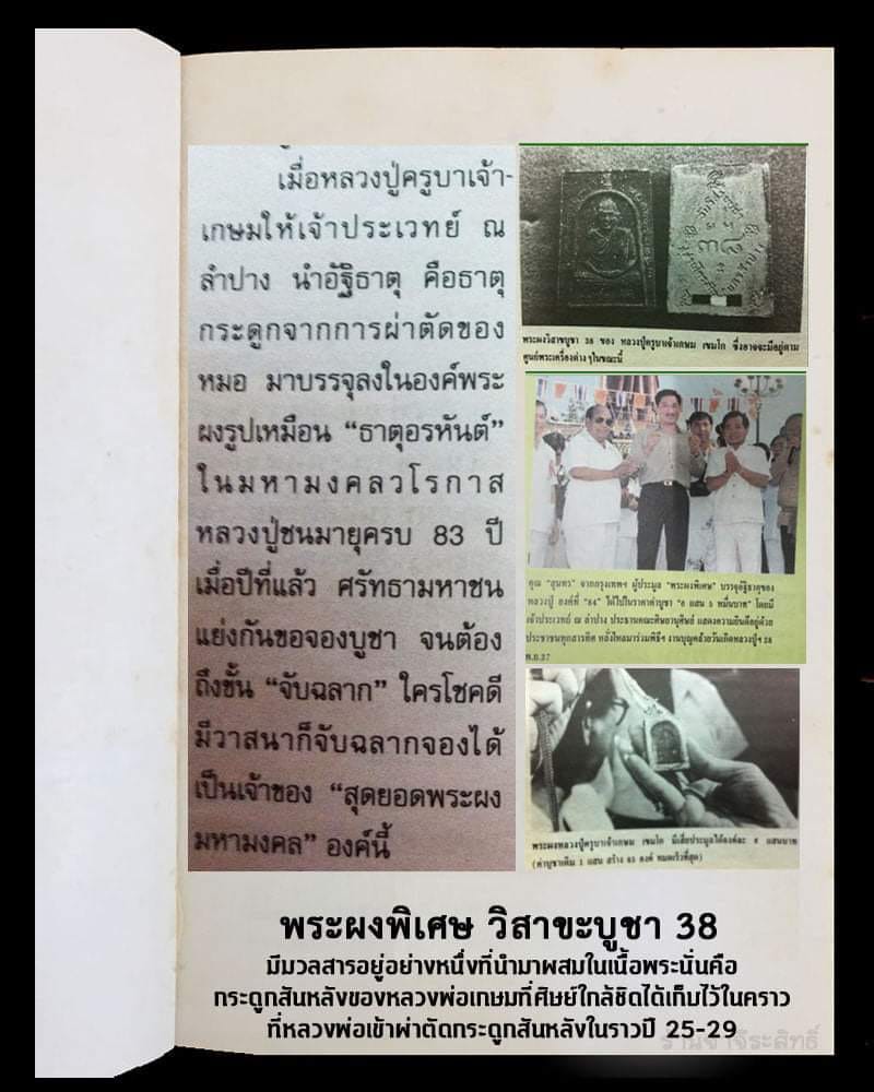 พระผง(พิเศษ) #พิมพ์ใหญ่ หลวงพ่อเกษม เขมโก (มีผงกระดูกสันหลังของหลวงพ่อผสมอยู่) รุ่น พระผงพิเศษวิสาขะบูชา 38 ผิวแห้งแห้ง #พระผงรุ่นนี้เป็นรุ่นที่ต้องจับฉลากใบจอง ไม่มีกล่องนะครับ จัดสร้างโดยคณะกรรมการสุสานไตรลักษณ์ ออกในคราวทำบุญ วันเกิดหลวงพ่อ วันที่28 พ.ย. 2537 ที่เรียกว่าพระผงพิเศษเนื่องจากมีมวลสารอยู่อย่างหนึ่งที่นำมาผสมในเนื้อพระนั่นคือกระดูกสันหลังของหลวงพ่อเกษมที่ศิษย์ใกล้ชิดได้เก็บไว้ในคราวที่หลวงพ่อเข้าผ่าตัดกระดูกสันหลัง ด้านหน้าติดจีวรที่หลวงพ่อเคยครอง และใช้ ด้านหลัง ติดธงชาติที่ผ่านการอธิฐานจิตมาแล้ว รับประกันพระแท้