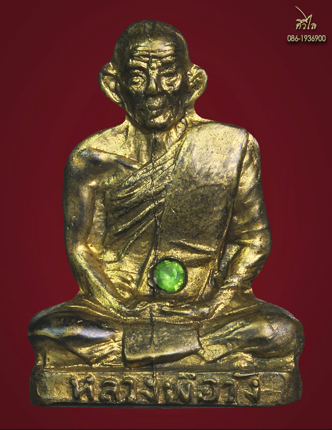 รูปหล่อปั๊มรุ่นแรกครูบาวัง วัดบ้านเด่น ปี 2506 กะไหล่ทองฝังพลอยเขียว