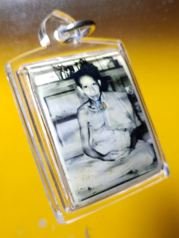 รูปถ่ายหลวงพ่อเกษม เขมโก หลังเลี่ยมมวลสาร ไม่ทราบปี