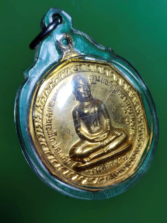 เหรียญพระแก้วมรกต ปี 19 หลังพระประธานวัดคะตึกเชียงมั่น กะไหล่ทอง พร้อมเลี่ยม