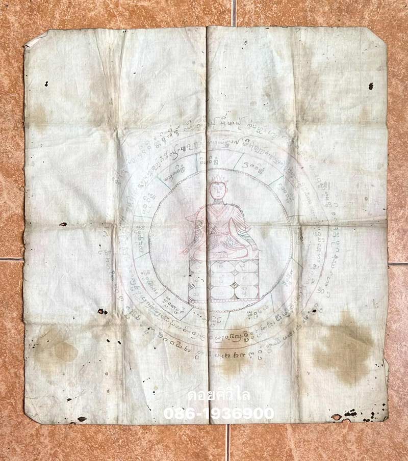 ผ้ายันต์ทิพยาธรล้านนาโบราณ ลงหมึกสักเก่าร้อยปี สวยสมบูรณ์ ขนาด20*20นิ้ว