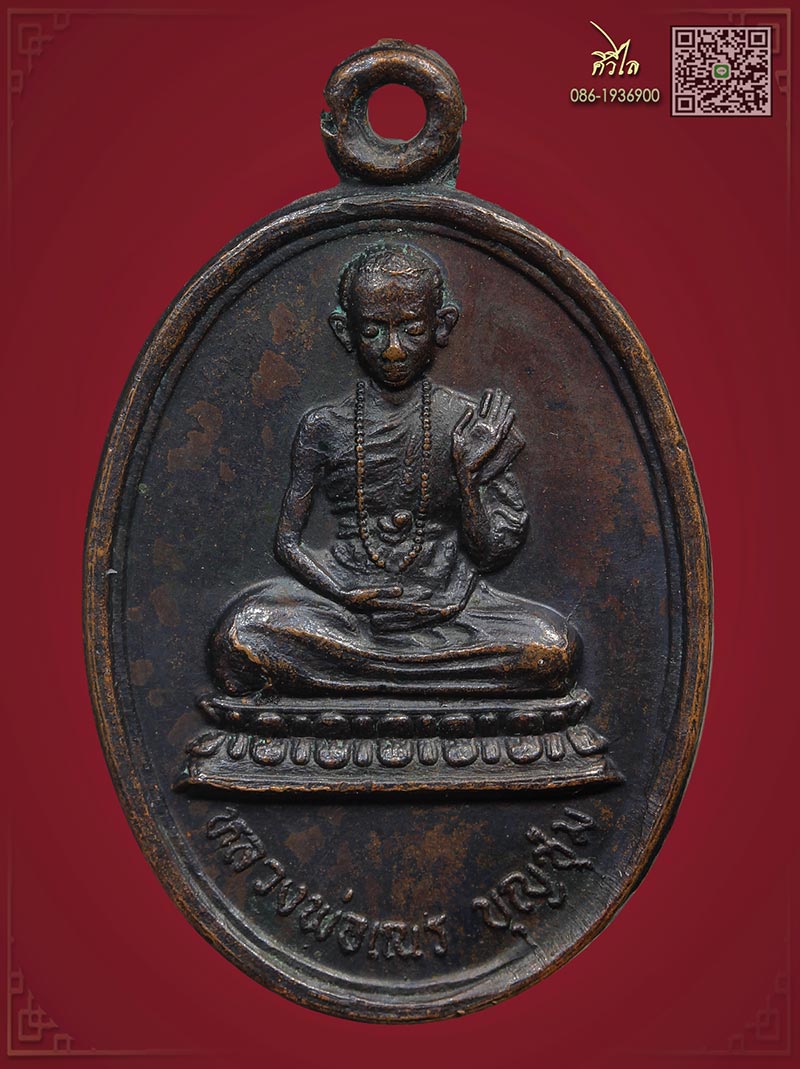 เหรียญรุ่นแรกครูบาบุญชุ่ม ญาณสังวโร เนื้อทองแดง ปี2519 บล็อกประคำเต็ม ผิว สวยเดิมๆ