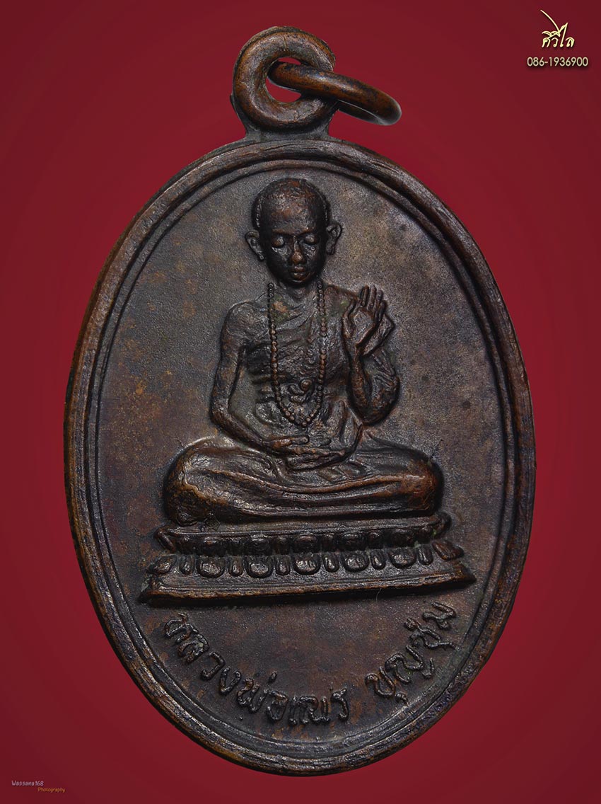 เหรียญรุ่นแรกครูบาบุญชุ่ม ญาณสังวโร เนื้อทองแดง ปี2519 บล็อกประคำเต็ม สวยเดิมๆ