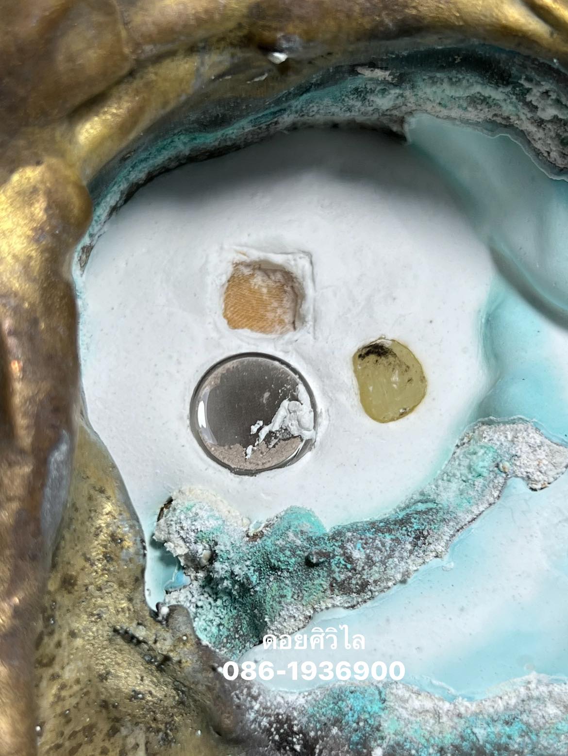 ใต้ฐานบรรจุ เกศาหลวงพ่อประสิทธิ์ ปุญญมากโร ผงชานหมากหลวงพ่อประสิทธิ์, ผงขี้โย (ก้นบุหรี่), ผงเหล็กน้ำพี้, ผงอิทธิเจ หลวงปู่แก้ว วัดเคลือวัลย์ ชลบุรี, ผงเกษรดอกไม้ บูชาพระบรมสารีริกธาตุ ในนิทรรศการพระธาตุวัดสันติธรรม และขี้ผึ้งเทียนชัย ในพิธีพุทธาภิเษก พระสีวลีมหาลาภ รุ่น ๑ - ๒ วัดสันติธรรม จำนวนการสร้าง เนื้อทองเหลืองเคลือบมันปู 800 องค์ ออกปี ๒๕๕๒ วัดป่าหมู่ใหม่ อำเภอแม่แตง #องค์นี้หมายเลข 504 สวยเดิมๆครับ