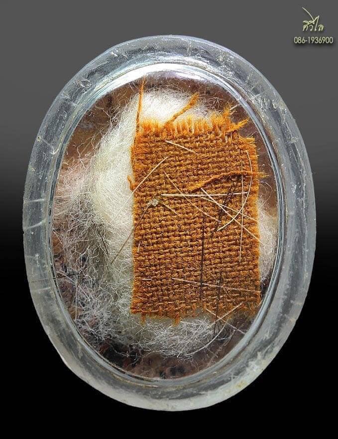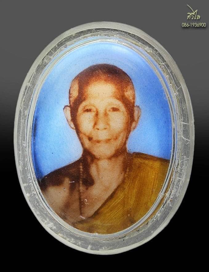 ล็อกเก็ตรุ่นแรกเขียนสีหลวงปู่ครูบาชัยวงค์ วัดพระพุทธบาทห้วยต้ม ฉากฟ้าหลังอุดเส้นเกศาจีวร เม็ดสำลีเช็