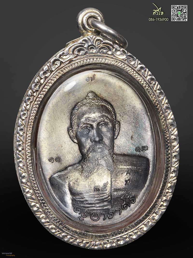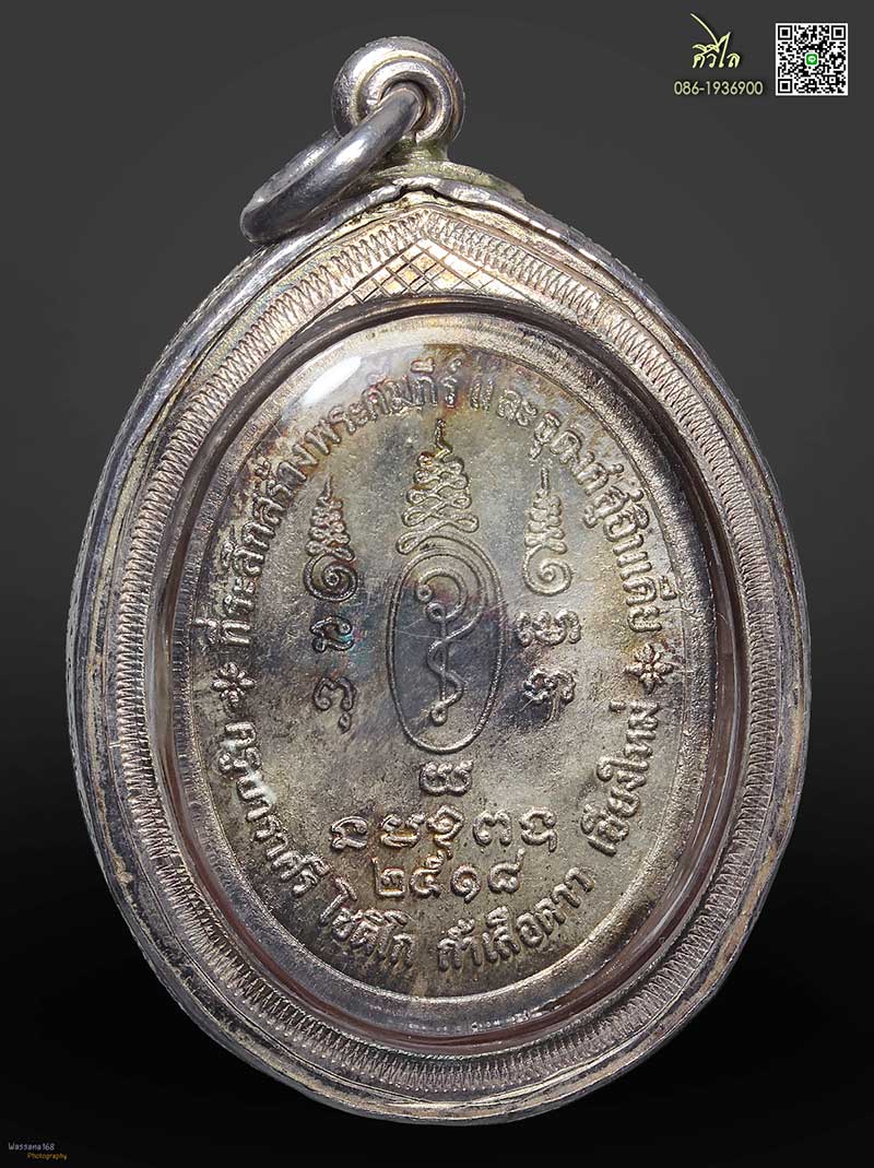 เหรียญรุ่นแรก ครูบาราศรี(ตุ๊เจ้าเสือดาว) ถ้ำเสือดาว จ.เชียงใหม่ ปี 2518 เนื้อเงิน
