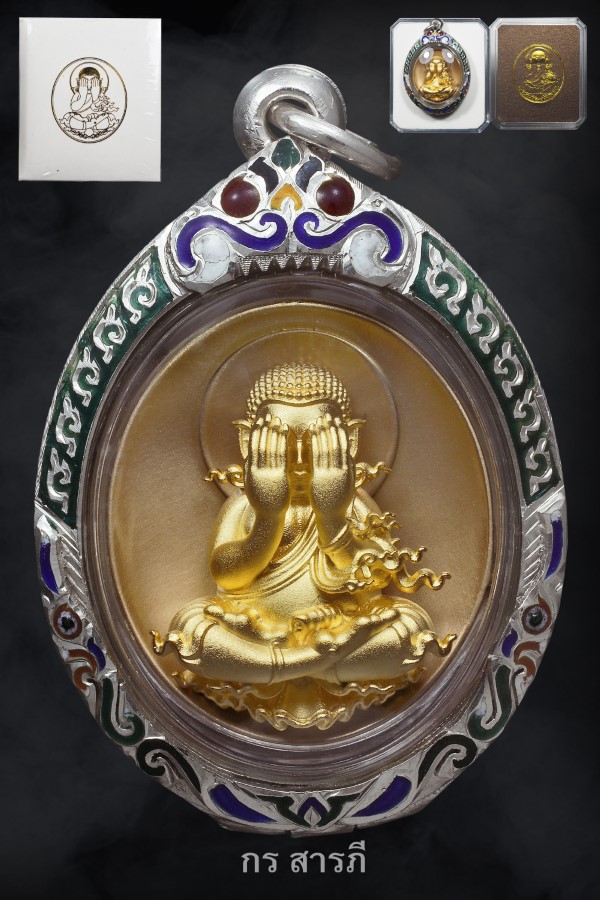 องค์นี้เนื้อบรอนซ์รมซาตินองค์พระชุบทอง เลี่ยมกันน้ำพร้อมใส่ตลับเงินลงยาสวยๆพร้อมใช้ มีกล่องเดิมๆครบ