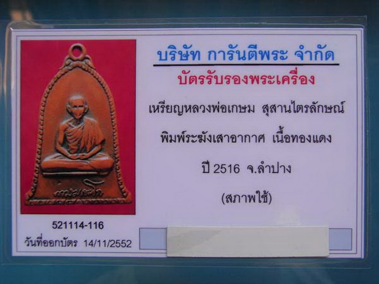 พระแท้ พิมพ์นิยม รับประกันด้วยบัตรรับรองพระเครื่องมาตรฐานสากล |