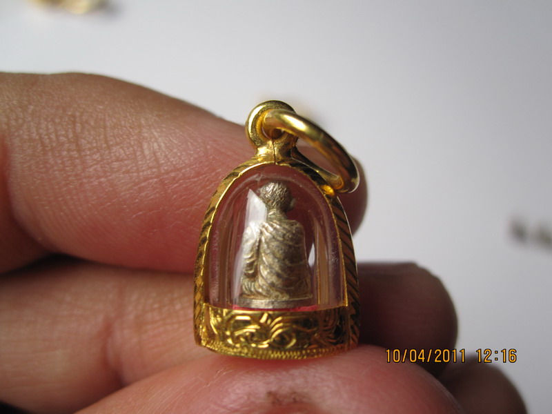 รุ่น หล่นหาย ปี31 เนื้อเงิน หลวงพ่อเกษม ใต้ฐานมีตอกโค๊ด พร้อมเหลี่ยมทองคำ(แท้) ครับ องค์หลวงพ่อ เนื้อเงิน แต่มีผิวออกสีประกายทอง เล็กน้อย ดูสวยงาม มากครับ