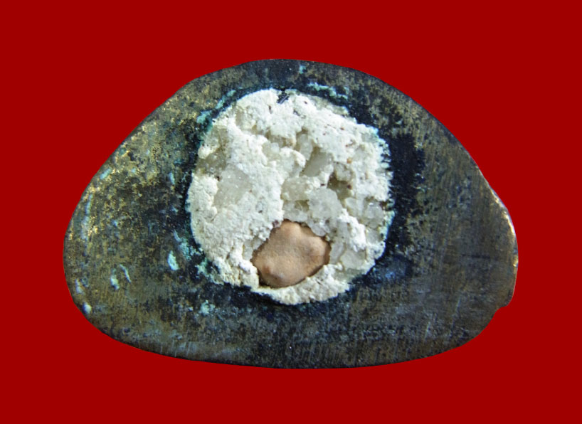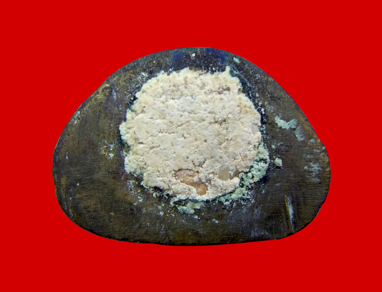 ฟ้า (เนื้อโลหะ) แผ่นจาร (ที่ได้รับมอบมาสร้างพระ) ลงอักขระโดย