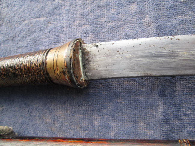 ปลายดาบเป็นสามเหลี่ยมหรือสันจั่ว ลับคมถึงปลายดาบ ด้ามทำจากไม้ถักหวายล้อม รัดหัวท้ายด้วยปลอกทองเหลือง...พร้ามลงรักน้ำเกลี้ยง..ฝักดาบทำจากไม้โมกมันถักรัดด้วยหวายพร้อมลงรักน้ำเกลี้ยงเช่นกัน..เป็นการตีระดับชั้นครู