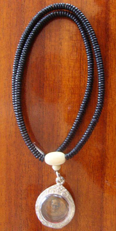 | พร้อมตลับเงิน สร้อยกะลายาว 9 นิ้ว จี้กลมงาช้างตามรูป |