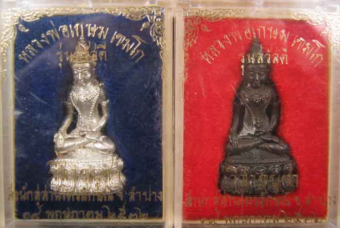 พระกริ่งรุ่นสวัสดีหลวงพ่อเกษม ปี 32 เนื้อเงินและนวะ กล่องเดิมค่ะ