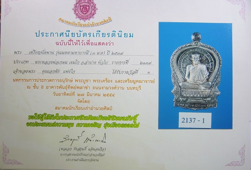 เหรียญนั่งพานหลวงพ่อเกษมเนื้อเงิน รุ่น 3 มต.พร้อมกล่องเดิมดีกรี ๓งานครับ