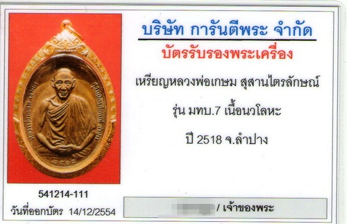 เหรียญสวยเดิม ๆ มาพร้อมเลี่ยมทองแท้สวย ๆ แถมบัตรรับประกันจากเว็ปเพื่อนบ้าน พ่วงด้วยดีกรีที่ 3 จากตั้งฮั้วเส็งธนบุรี ปี 50 (ครบสูตร ) ใครชอบเชิญครับ 083-2060360