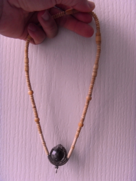 สร้อยงาช้างล้วนๆ ตรงหัวสร้อยเป็นหมากทุยพอกผงเก่า เจ้าของเดิมห้อยมาพอฉำ่ๆ ขนาดความยาวประมาณ42ซม. เม็ดเล็กผ่าศูนย์กลาง 5มิล เม็ดใหญ่ 8มิลร้อยร้อยด้วยเชือกร่ม สวยครับดูคลังดี จะเอาไปร้อยกับเม็ดทองก็สวยเพิ่มมูลค่า ใครชอบเชิญให้ราคา หรือโทรสอบถามก็ได้ครับ ถ้าอยู่ลำพูนเชียงใหม่จะมาขอดูของก่อนก็ได้นะครับ