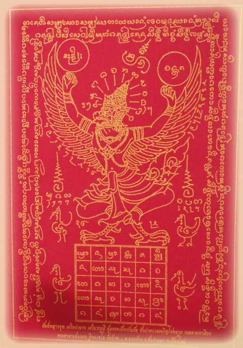 พญาครุฑล้านนามหาบารมี วัดป่าตาล อ.สันกำแพง เนื้อกะไหล่ทอง No. 66 เลขสวย สร้างน้อยอนาคตไกล แผ่เมตตาอธิฐานจิตโดยคณาจารย์ ทั่วทั้งแผ่นดินล้านนา พิธิมหาเทวาภิเษก วันพุธ ที่ ๑ สิงหาคม 2555 ที่ วัดป่าตาล ต.บวกค้าง อ.สันกำแพง ที่ผ่านมานี่เองครับ และได้เข้าร่วมพิธีมหาพุทธาภิเษกร่วมกับล๊อกเก็ตครูบาเจ้าศรีวิไชย ที่วัดพระนอนปู๋คา เมื่อวันที่ ๒๙ กรกฎาคม 2555 ที่ผ่านมาอีกด้วย เจตนาการสร้างดียิ่ง น่าเก็บก่อนที่ราคาจะไปไกลนี้ แถมผ้ายันต์พญาครุฑสีแดงด้วย 1 ผืน