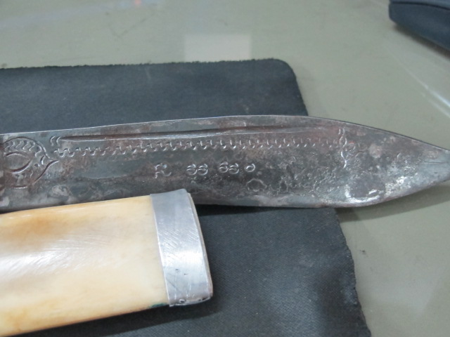 มีดด้ามงาฝักเป็นกระดูกยาวรวมฝัก 11.นิ้วไม่รู้ที่ใหนครับ