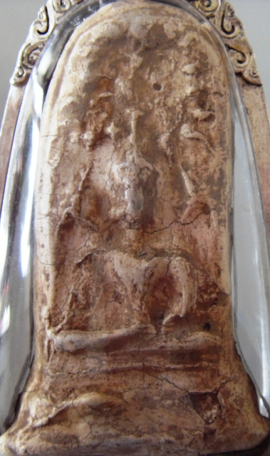 เนื้อดินออกขาวอมเขียวกรุเวียงกาหลงคราบกรุเดิมๆดูง่าย เลี่ยมเงินเก่าปิดไม่แพงครับ