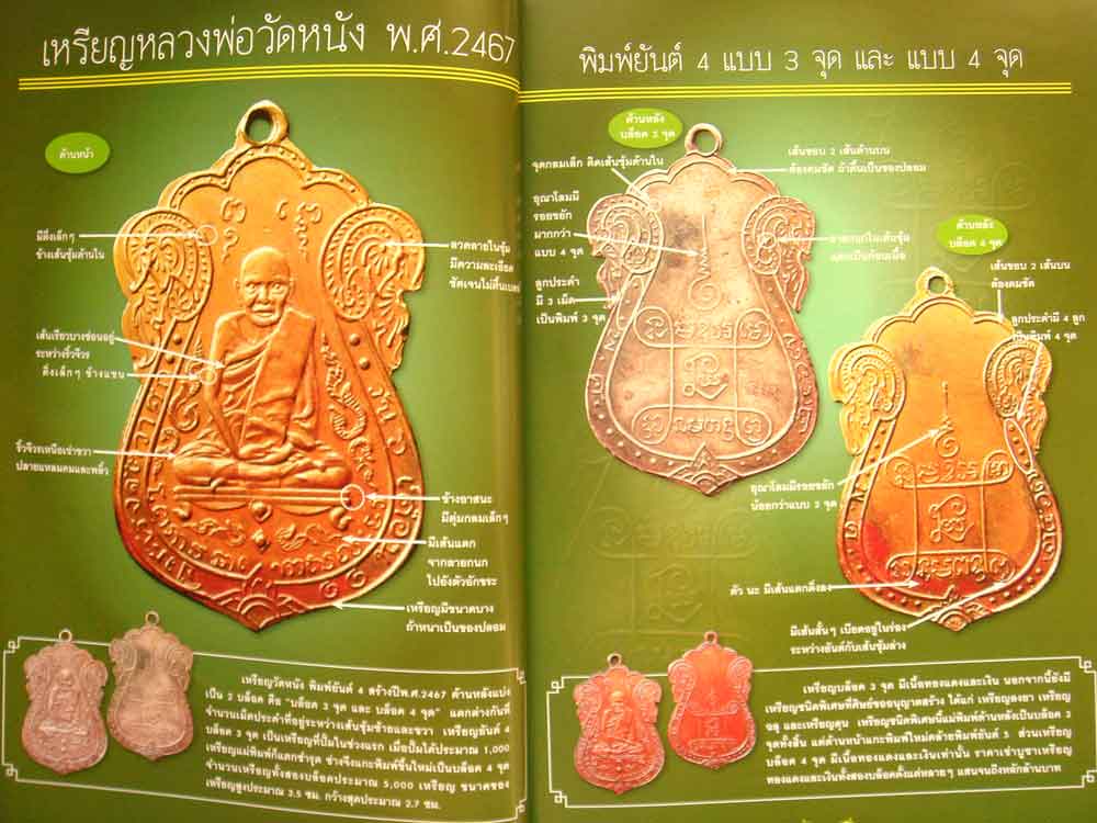 นับว่าคุ้มค่ามากๆเลยครับเพราะมีเหรียญดังๆ สำคัญๆ รวม 108 เหรียญอาทิเช่น - เหรียญที่ ๑ หลวงพ่อกลั่น วัดพระญาติฯ - เหรียญที่ ๒ หลวงปุ่เอี่ยม วัดหนัง - เหรียญที่ ๓ หลวงปู่ศุข วัดปากคลองมะขามเฒ่า - เหรียญที่ ๔ หลวงพ่อคง วัดบางกระพ้อม - เหรียญที่ ๕ หลวงพ่อนุ่ม วัดนางใน - เหรียญที่ ๖ หลวงพ่อเดิม วัดหนองโพ - เหรียญที่ ๗ หลวงปู่เพิ่มวัดกลางบางแก้ว - เหรียญที่ ๘ หลวงพ่อพริ้ง วัดบางปะกอก - เหรียญที่ ๙ หลวงพ่อคง วัดบางกระพ้อม รุ่นปาดตาล - เหรียญที่ ๑๐ หลวงพ่ออี๋ วัดสัตหีบ - เหรียญที่ ๑๑ เหรียญปวเรศ วัดบวรฯ - เหรียญที่ ๑๒ เหรียญสิบแปดอรหันต์ - เหรียญที่ ๑๓ เหรียญนางกวัก หลวงพ่อเส้ง วัดศรีประจันคาม - เหรียญที่ ๑๔ หลวงพ่อเทศน์ วัดวิชิตฯ - เหรียญที่ ๑๕ หลวงพ่อปลอด วัดนาเขลียง - เหรียญที่ ๑๖ หลวงพ่อเพ็ชร เกาะพงัน - เหรียญที่ ๑๗ พ่อท่านเขียว วัดหรงบน - เหรียญที่ ๑๘ พระอาจารย์ฝั้น อาจาโร - เหรียญที่ ๑๙ พระอาจารย์มั่น ยันต์๘ - เหรียญที่ ๒๐ หลวงพ่อทองศุข วัดโตนดหลวง - เหรียญที่ ๒๑ หลวงพ่อครน วัดบางแชะ - เหรียญที่ ๒๒ หลวงพ่อเชย วัดเจษฏาราม - เหรียญที่ ๒๓ หลวงพ่อจอน วัดดอนรวบ - เหรียญที่ ๒๔หลวงพ่อสด วัดปากน้ำ - เหรียญที่ ๒๕ หลวงพ่อเฟื่อง วัดคงคาเลียบ - เหรียญที่ ๒๖ พระอาจารย์วัน วัดประสิทธิชัย - เหรียญที่ ๒๗ หลวงพ่อจง วัดหน้าต่างนอก - เหรียญที่ ๒๘ หลวงพ่อกวย วัดโฆสิตาราม - เหรียญที่ ๒๙ หลวงพ่อพรหม รุ่นสรงน้ำ - เหรียญที่ ๓๐ หลวงปู่เอี่ยม วัดสะพานสูง - เหรียญที่ ๓๑ หลวงพ่อวัดไร่ขิง - เหรียญที่ ๓๒ หลวงพ่อหรุ่น วัดอัมพวัน - เหรียญที่ ๓๓ พระชินราช หลวงปู่บุญ - เหรียญที่ ๓๔ หลวงพ่อบ่าย วัดช่องลม - เหรียญที่ ๓๕ หลวงพ่อแช่ม วัดตาก้อง - เหรียญที่ ๓๖ เหรียญเปลวเทียน หลวงพ่อเดิม - เหรียญที่ ๓๗ หลวงพ่อเปิ่น วัดบางพระ - เหรียญที่ ๓๘ หลวงพ่อเงิน บางคลาน จอบใหญ่ ปี๑๕ - เหรียญที่ ๓๙ หลวงพ่อคูณ วัดบ้านไร่ - เหรียญที่ ๔๐ เหรียญระฆัง หลวงพ่อเกษม - เหรียญที่ ๔๑ หลวงปู่โต๊ะ วัดประดู่ฉิมพลี - เหรียญที่ ๔๒ เศียรพ่อแก่ วัดใหม่พระพิเรนทร์ - เหรียญที่ ๔๓ หลวงปู่ดุลย์ วัดบูรพาราม - เหรียญที่ ๔๔ หลวงปู่รอด วัดทุ่งศรีเมือง - เหรียญที่ ๔๕ พระชินราช อินโดจีน ปี๘๕ - เหรียญที่ ๔๖ เจ้าพ่อเสือ รุ่นแรก - เหรียญที่ ๔๗ หลวงพ่อแช่ม วัดดอนยายหอม - เหรียญที่ ๔๙ หลวงปู่รอด วัดบางน้ำวน ความหนา ๑๐๖ หน้า กระดาษอย่างดี ภาพสีทั้งเล่ม |