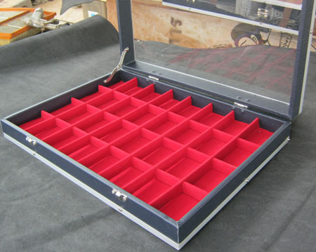 ขนาด 39 ซ.ม.x 29 ซ.ม. ด้านนอกบุหนัง ด้านในกรุกำมะหยี่ ใส่ขอบกันกระแทก