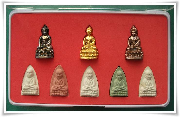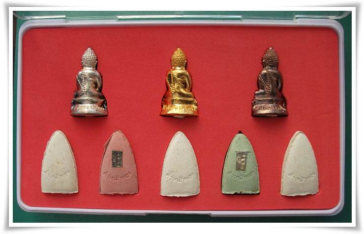 หลวงพ่อทวด 5 องค์ เนื้อสีแดง และ สีเขียวก้านมะลิ หลังมีแผ่นโค๊ด