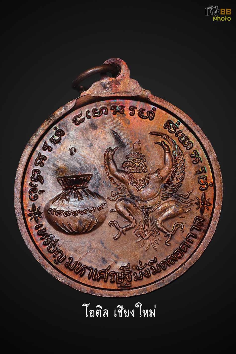 เหรียญมหาเศรษฐี หลวงปู่แหวน วัดดอยแม่ปั๋ง เนื้อทองแดง ปี2520 ตอกโค๊ตพร้อมซองเดิมๆ